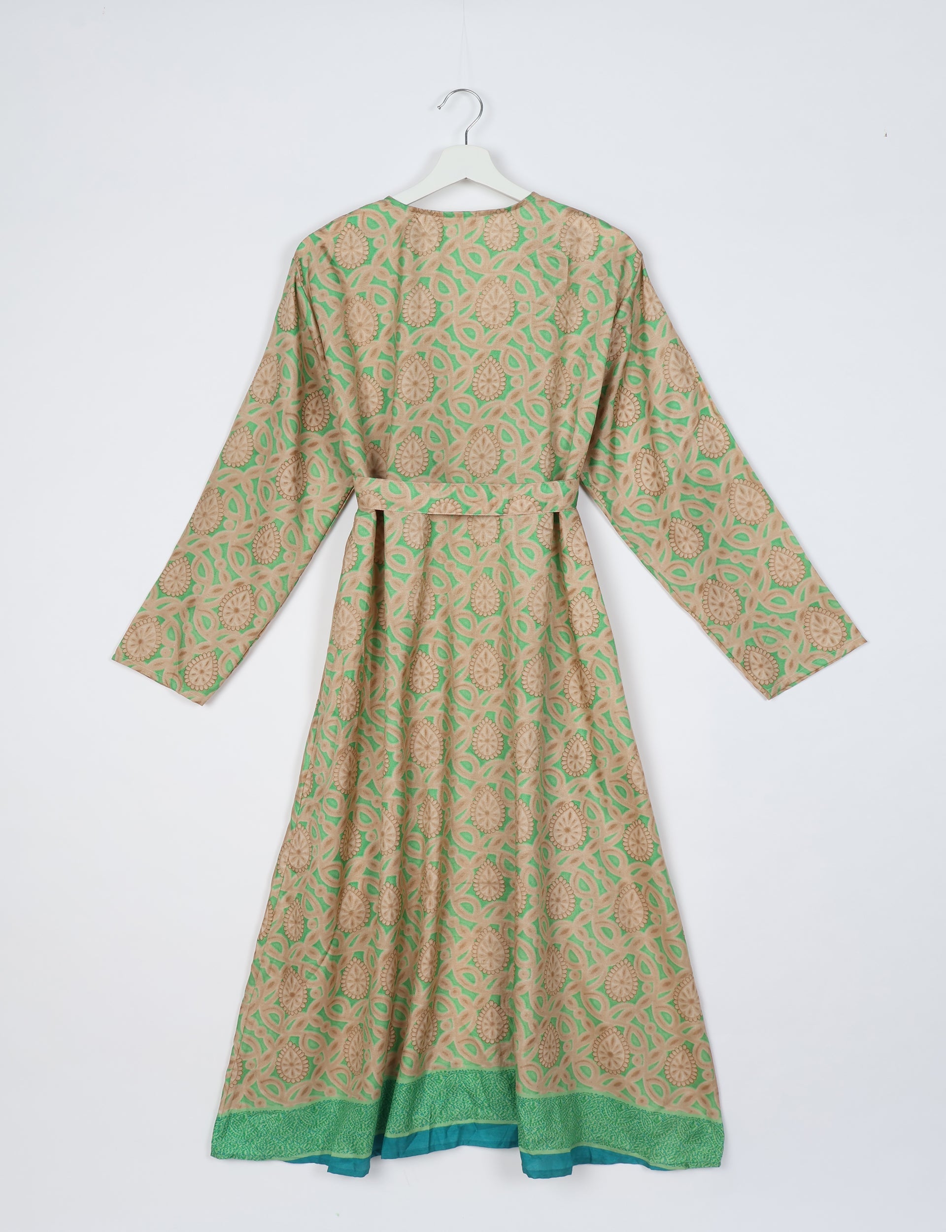 Full-length robe with a tie-up belt. Designed with long sleeves and a straight hem.