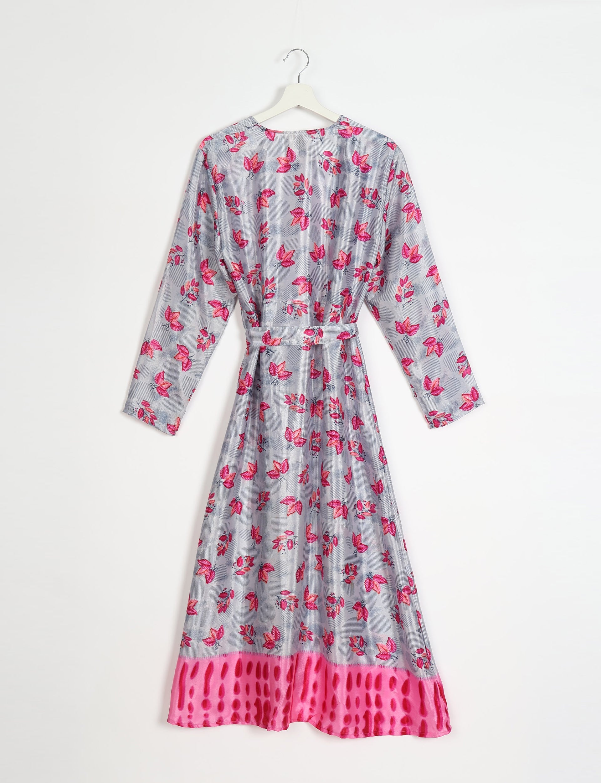 Full-length robe with a tie-up belt. Designed with long sleeves and a straight hem.
