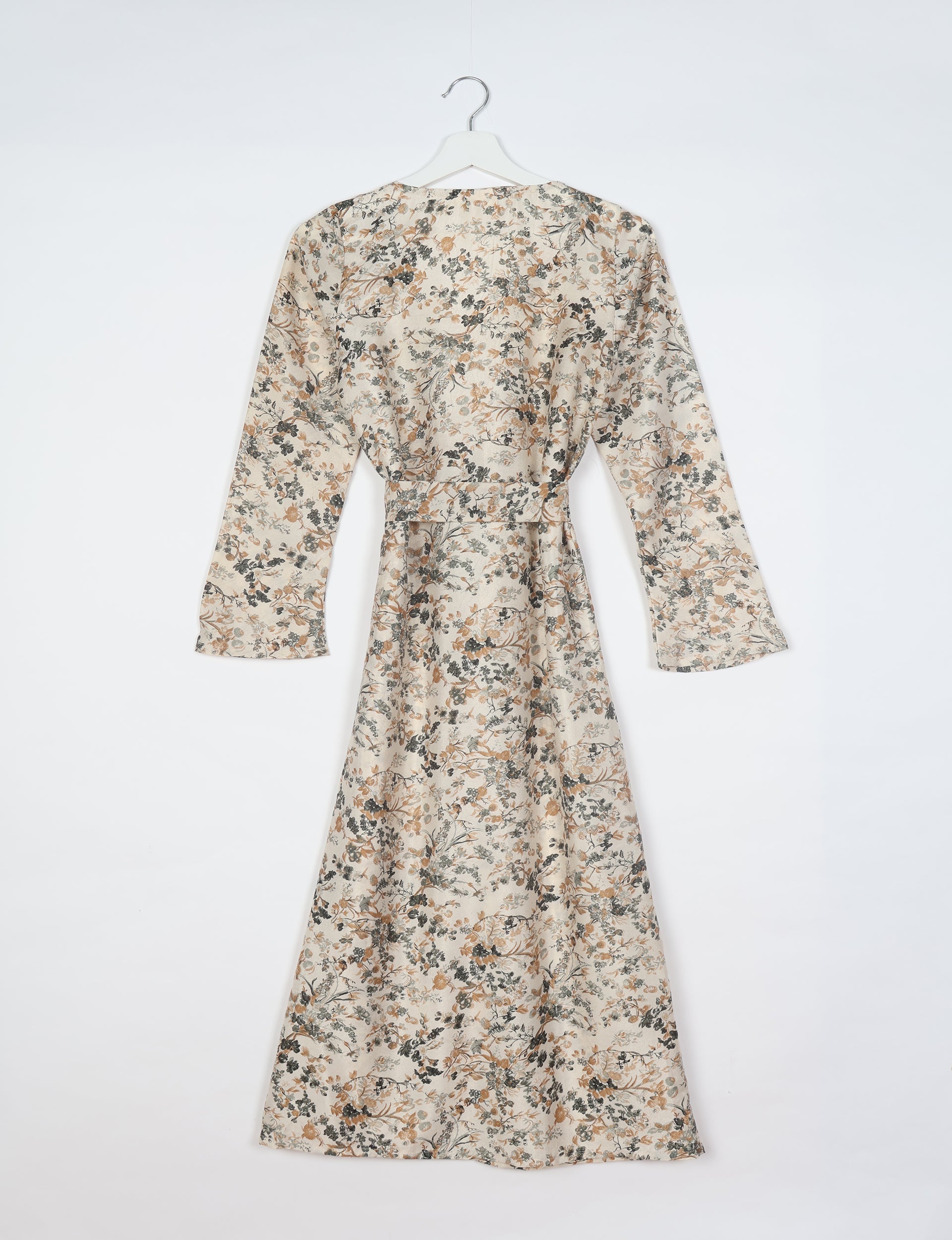 Full-length robe with a tie-up belt. Designed with long sleeves and a straight hem.