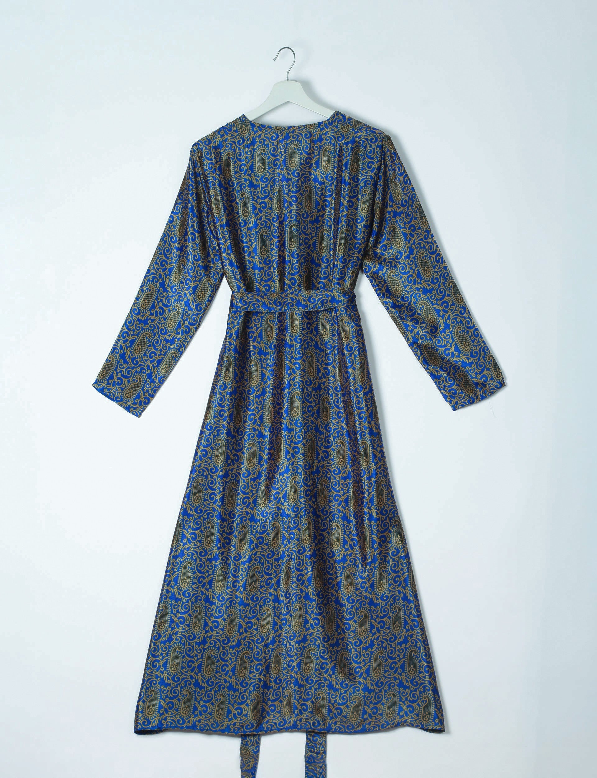 Full-length robe with a tie-up belt. Designed with long sleeves and a straight hem.