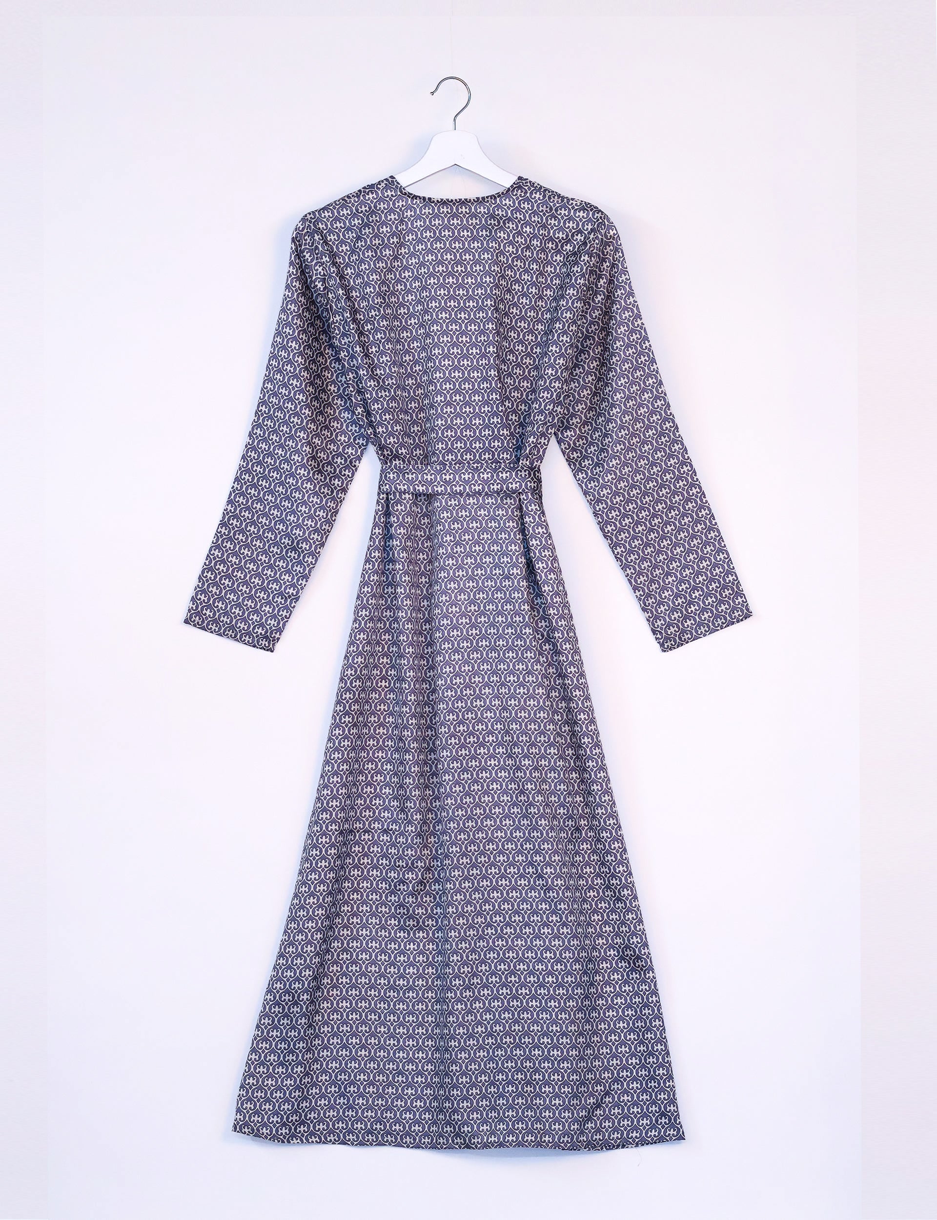 Full-length robe with a tie-up belt. Designed with long sleeves and a straight hem.