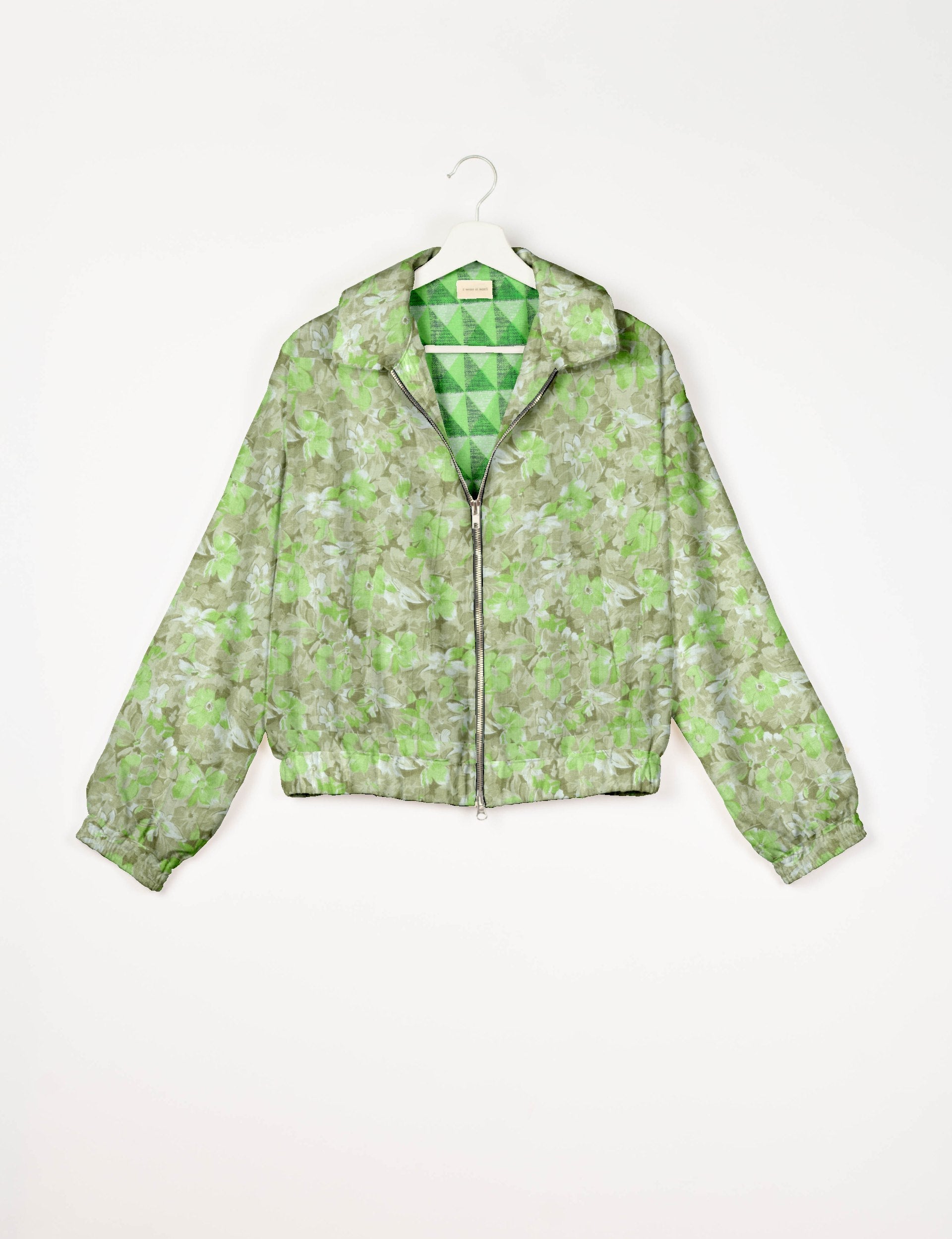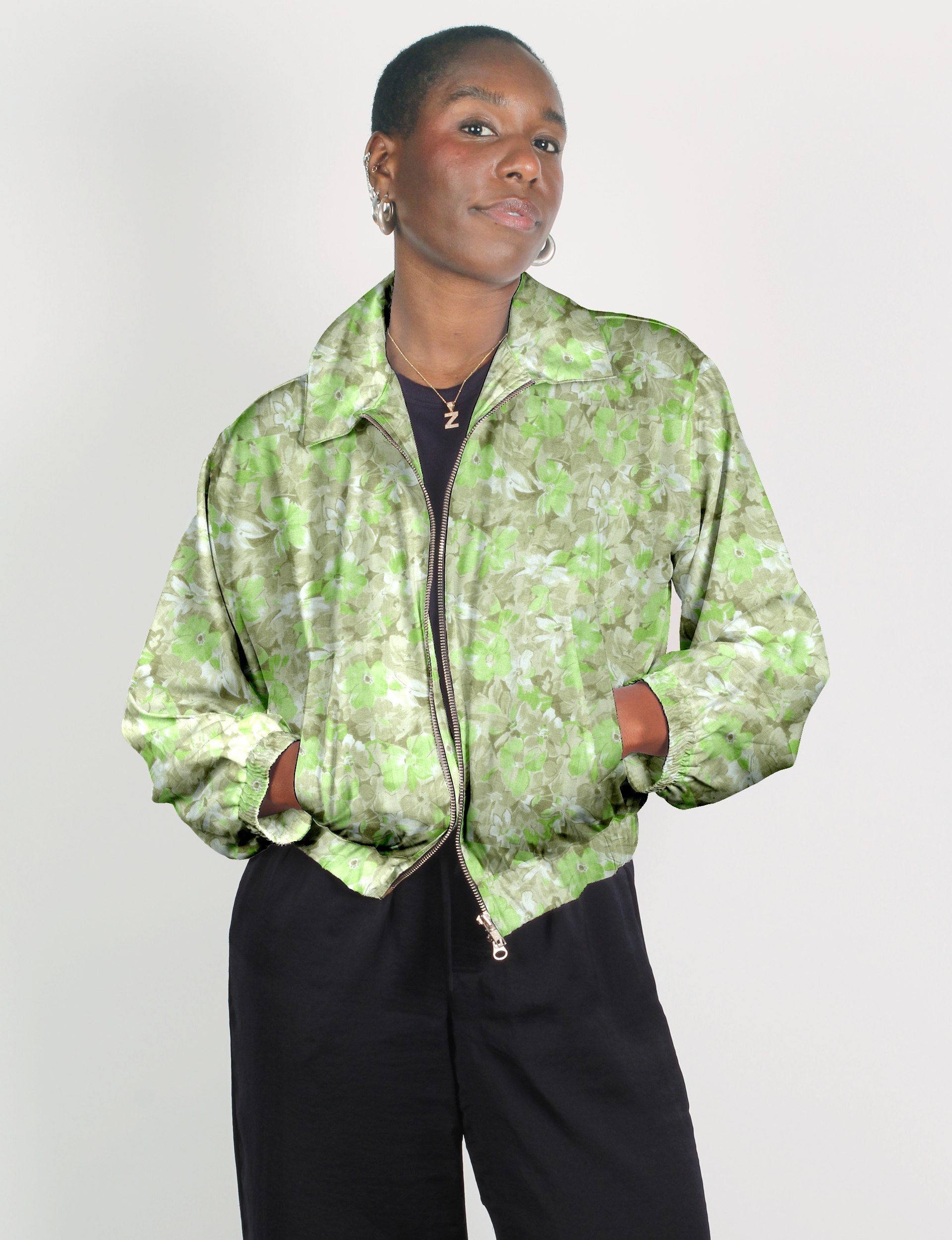 Our Bomber jacket is an iconic wardrobe essential! This military classic features a cropped shape, with elasticated bottom, hem and cuffs. It comes with 2 welt pockets and twin metallic zippers down the front. Also comes with contrast sari print lining and collar flip. Perfect layer for spring days, cool evenings, or air-conditioned workspaces without weighing you down.