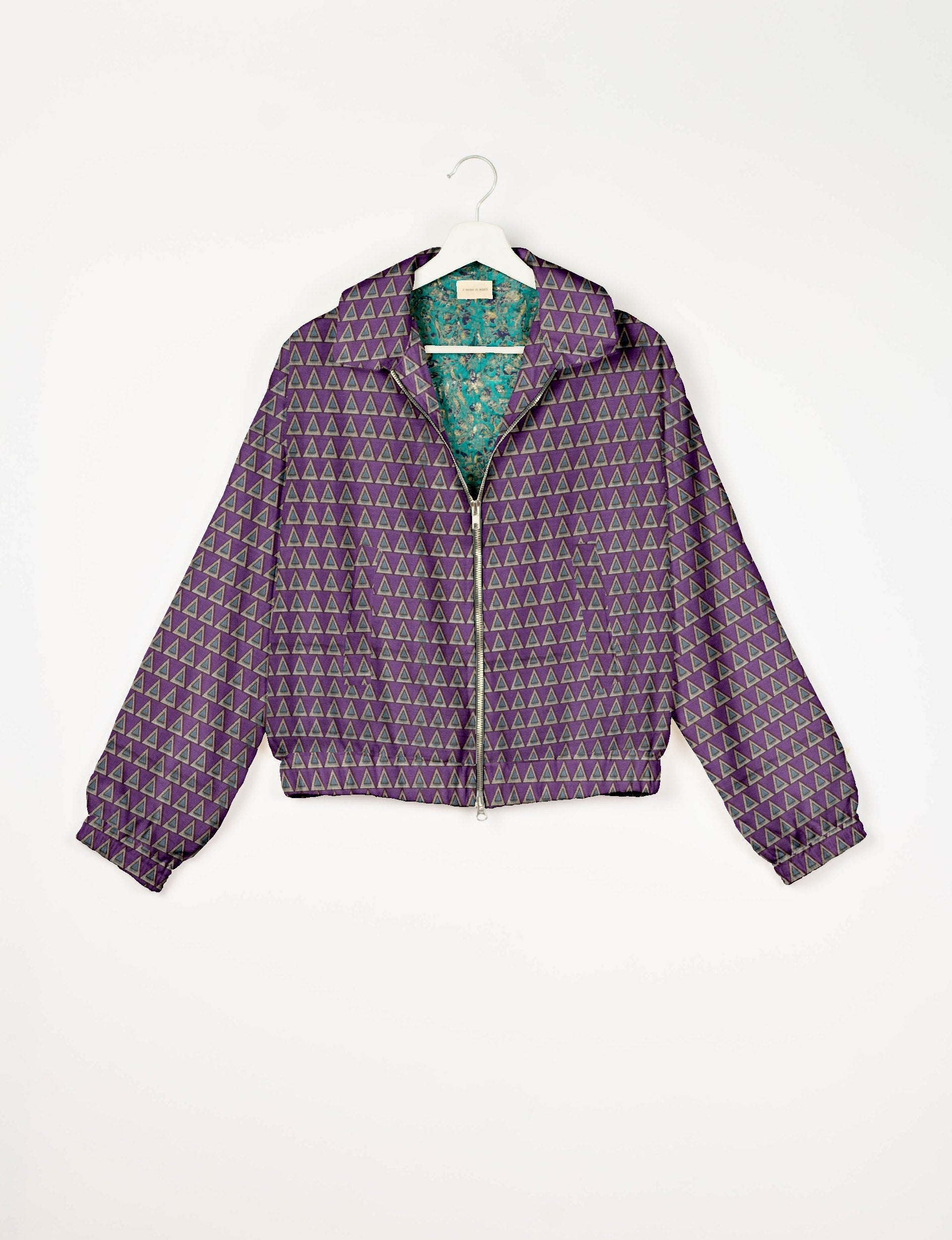 Our Bomber jacket is an iconic wardrobe essential! This military classic features a cropped shape, with elasticated bottom, hem and cuffs. It comes with 2 welt pockets and twin metallic zippers down the front. Also comes with contrast sari print lining and collar flip. Perfect layer for spring days, cool evenings, or air-conditioned workspaces without weighing you down.