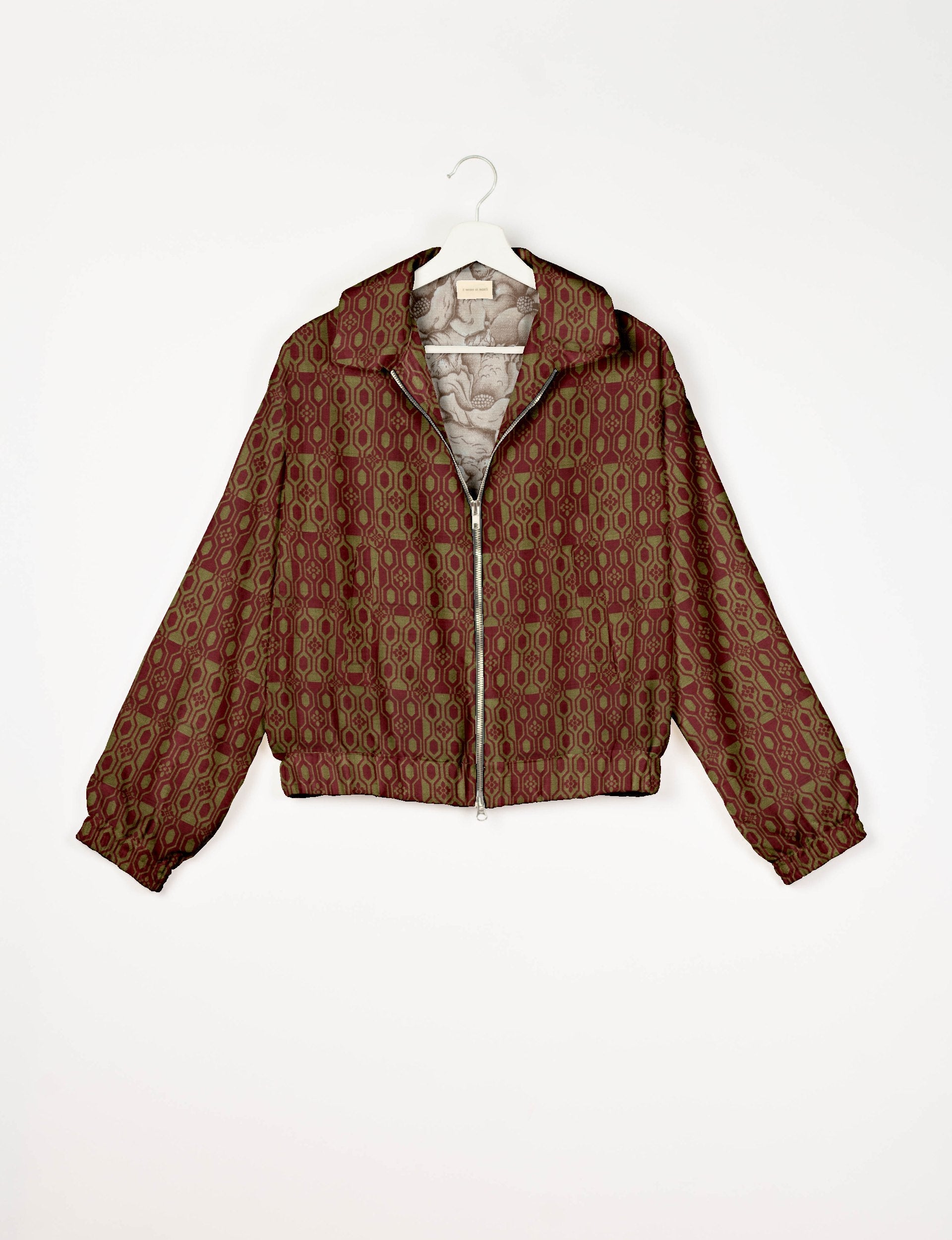 Our Bomber jacket is an iconic wardrobe essential! This military classic features a cropped shape, with elasticated bottom, hem and cuffs. It comes with 2 welt pockets and twin metallic zippers down the front. Also comes with contrast sari print lining and collar flip. Perfect layer for spring days, cool evenings, or air-conditioned workspaces without weighing you down.
