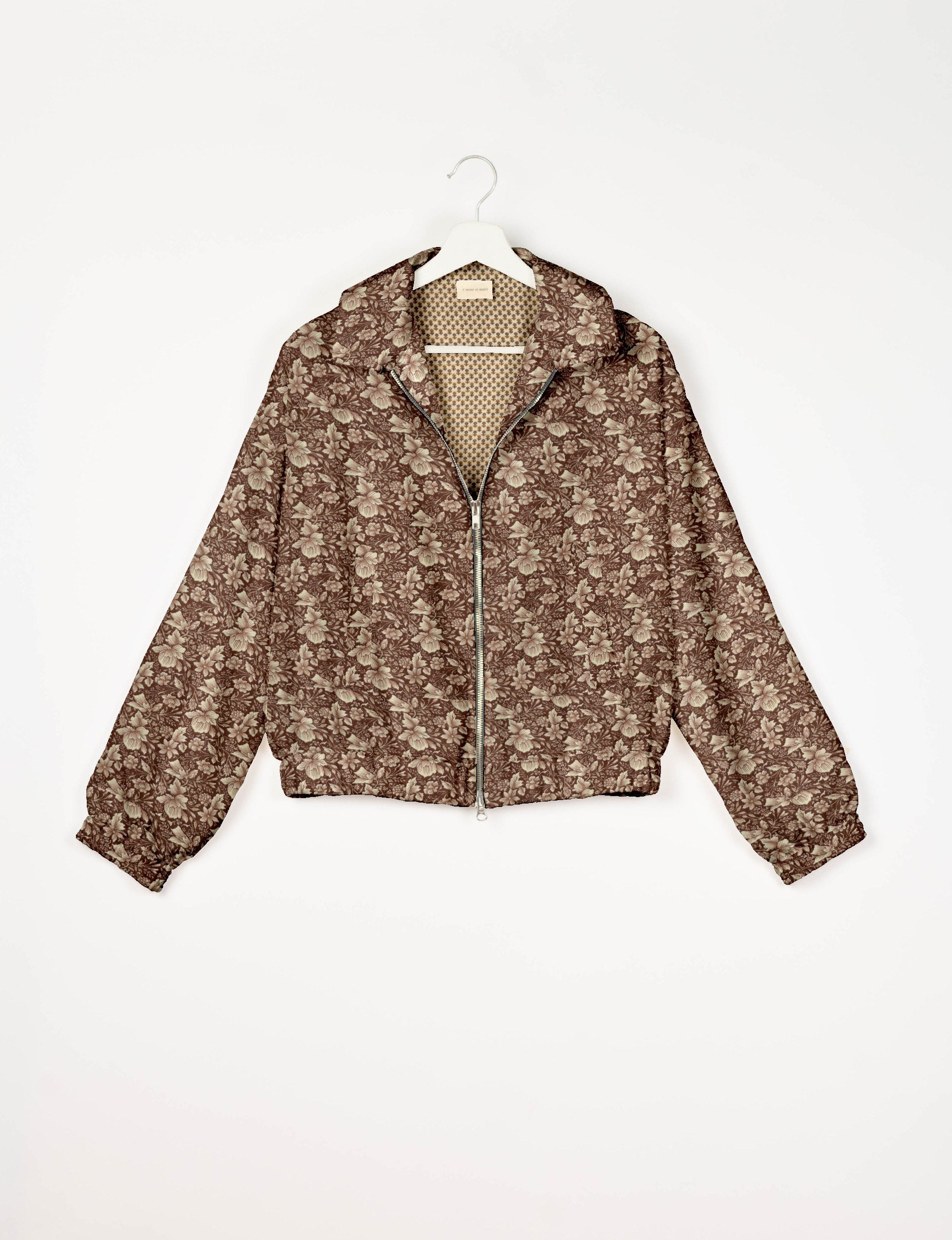 Our Bomber jacket is an iconic wardrobe essential! This military classic features a cropped shape, with elasticated bottom, hem and cuffs. It comes with 2 welt pockets and twin metallic zippers down the front. Also comes with contrast sari print lining and collar flip. Perfect layer for spring days, cool evenings, or air-conditioned workspaces without weighing you down.