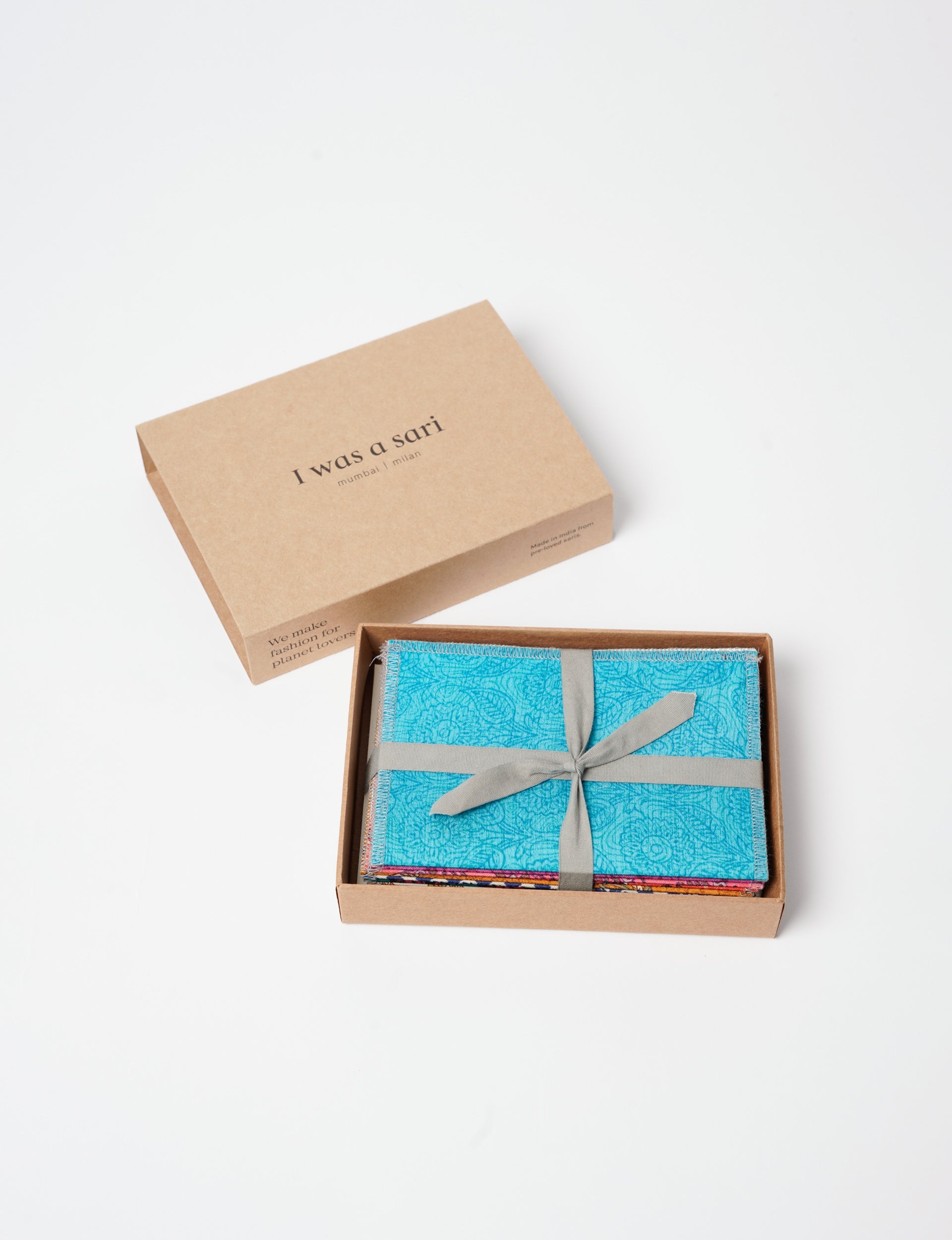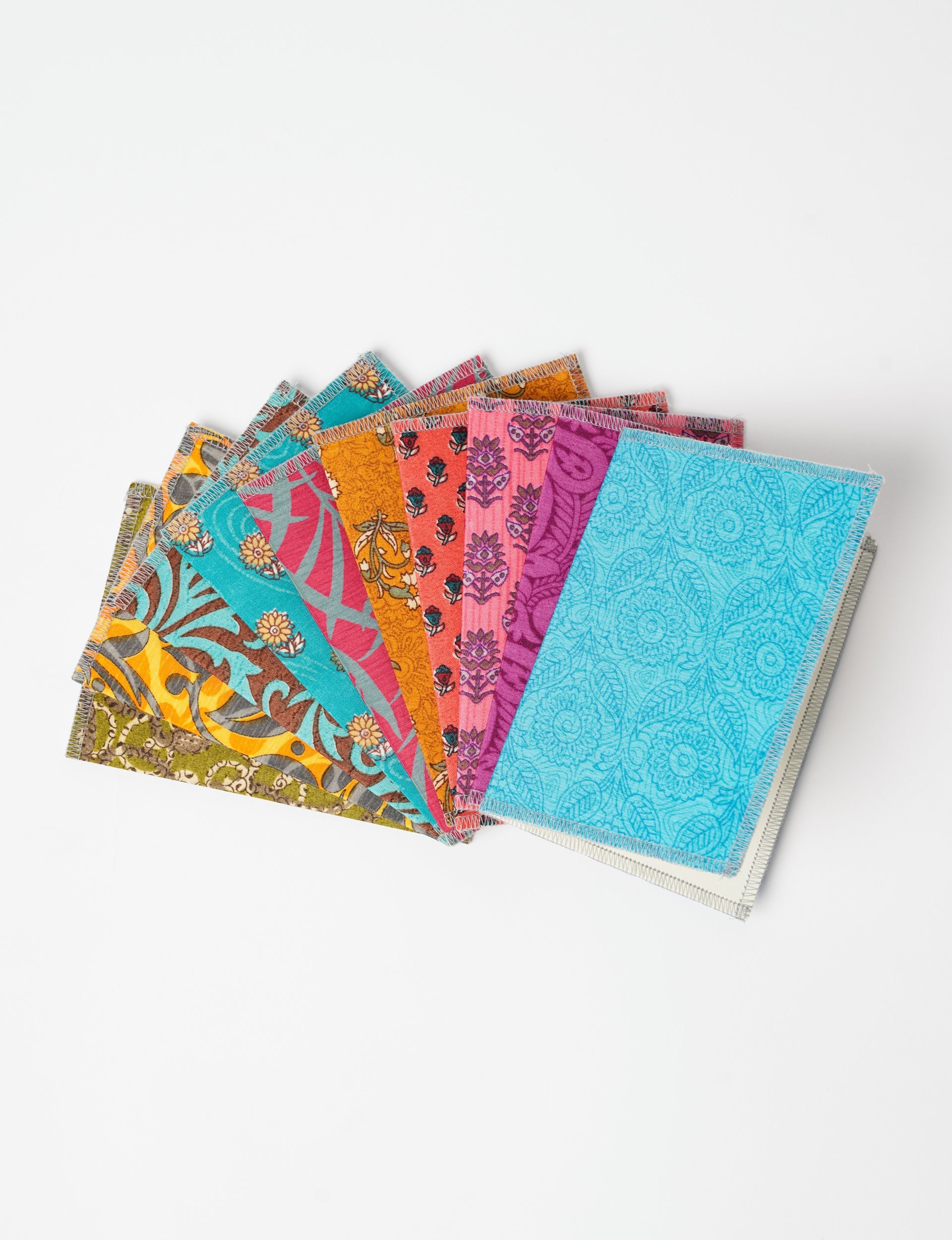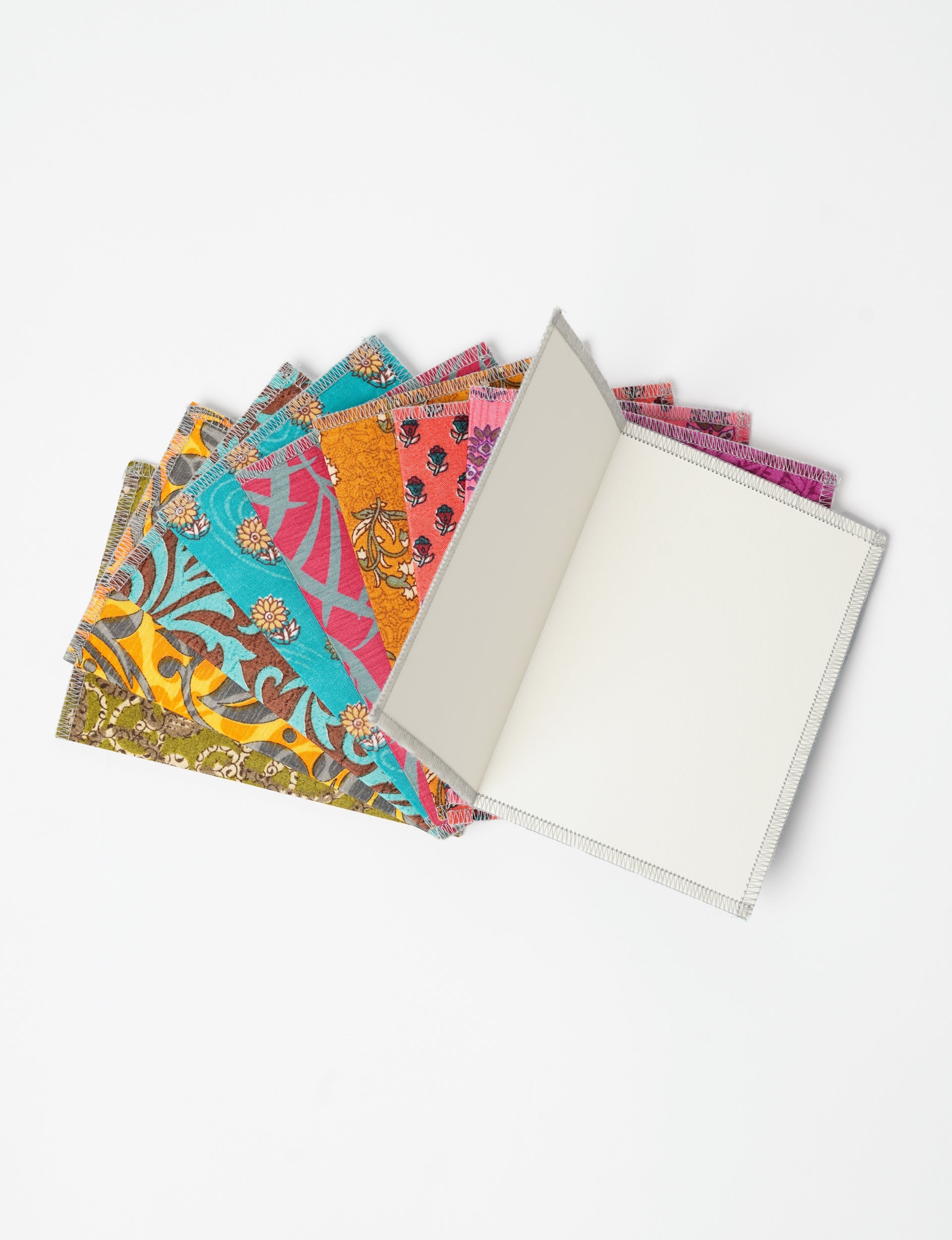 Made with 100% recycled paper, this set of assorted folded postcards are made with printed sari fabric and features contrast overlock edging. Come with envelopes. Lighting and screens may cause slight variations in color appearance.