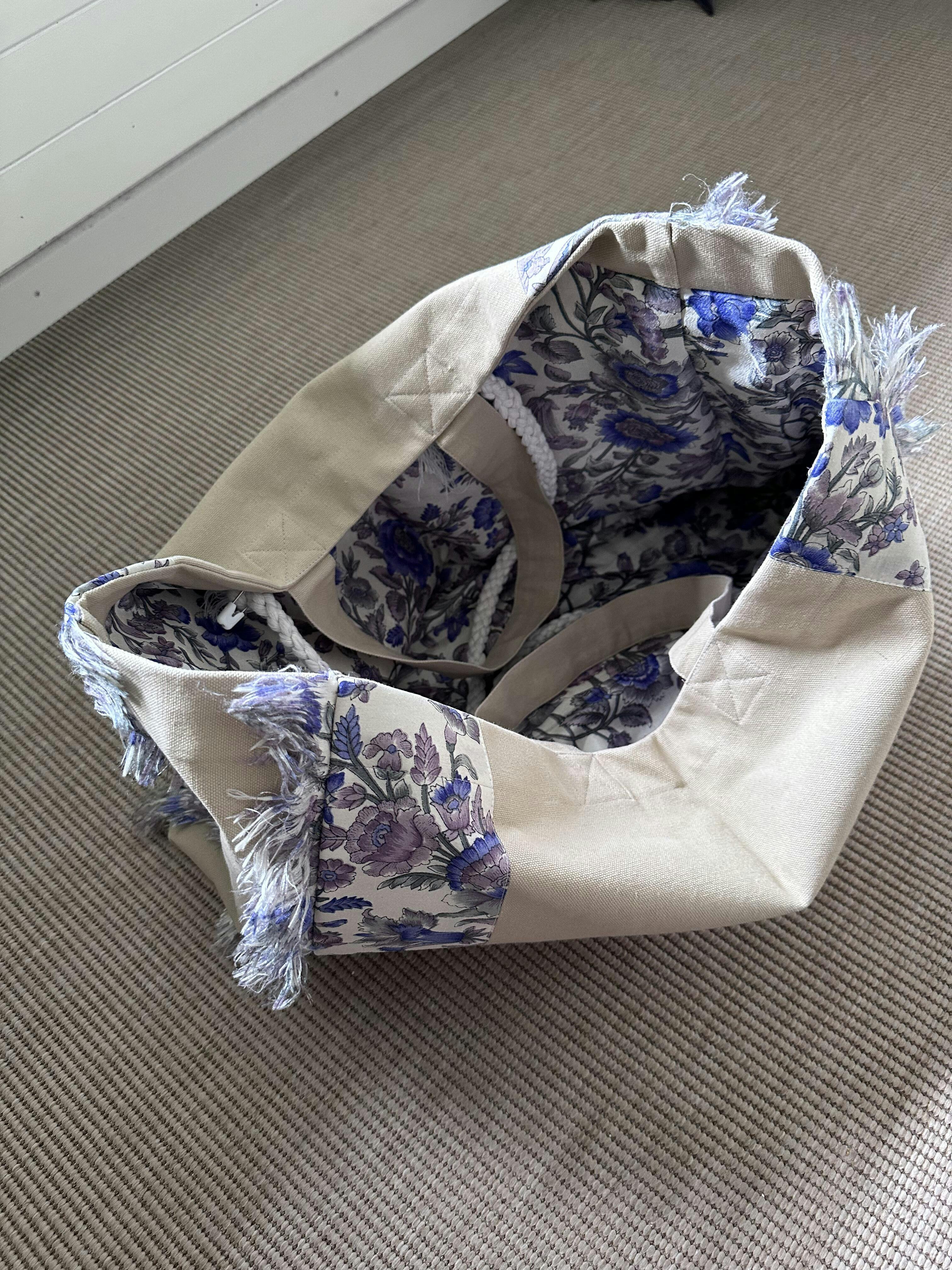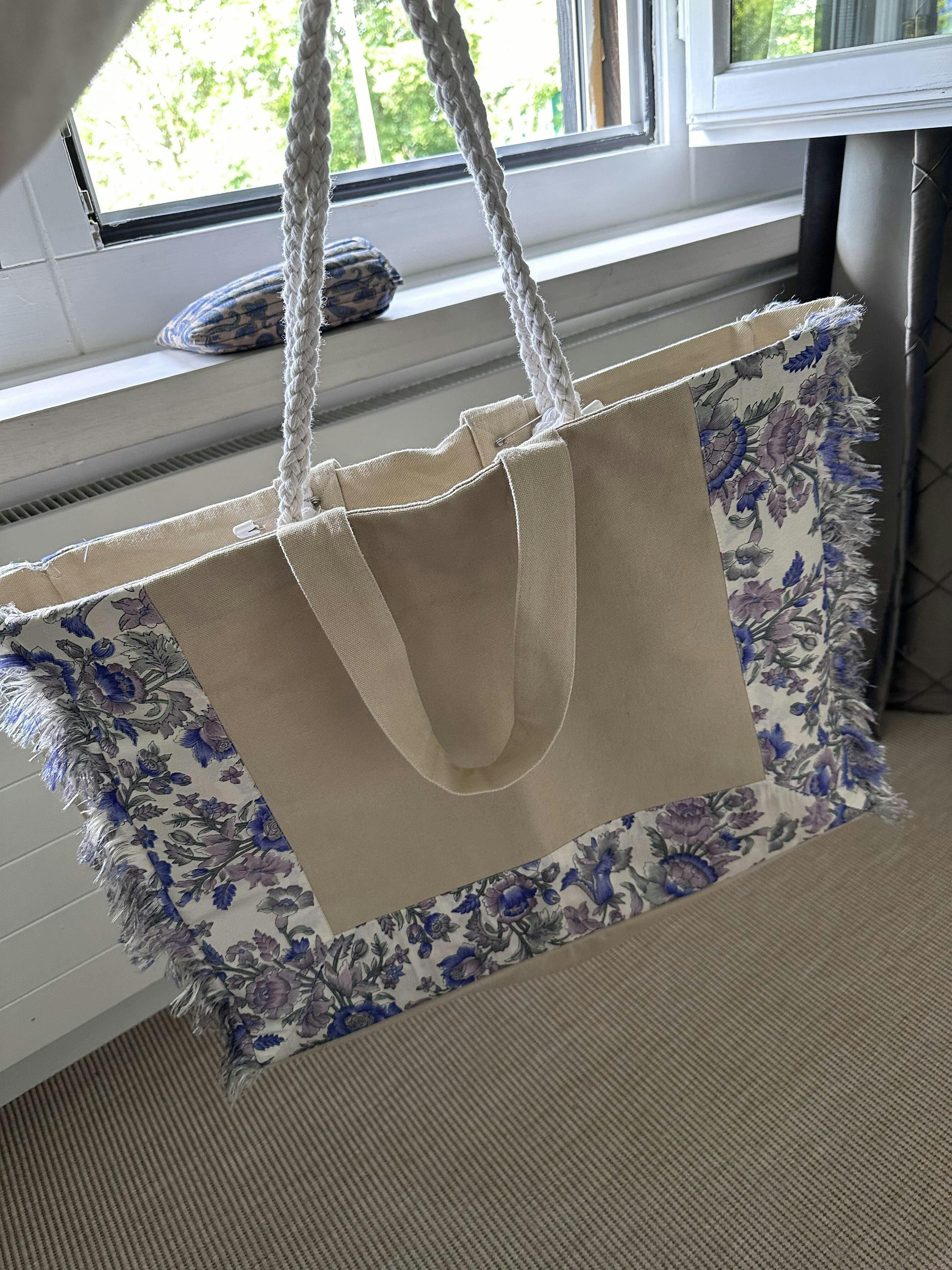 This saree pattern is absolutely gorgeous, the bag is spacious and the cotton canvas sturdy but pliable. The only detail I would have liked to change is to add a second, longer, pair of handles that would allow for comfortable carrying on the shoulder. I have created my own ;) but I am no seamstress, so the look is not as perfect. Still love it though 🤍