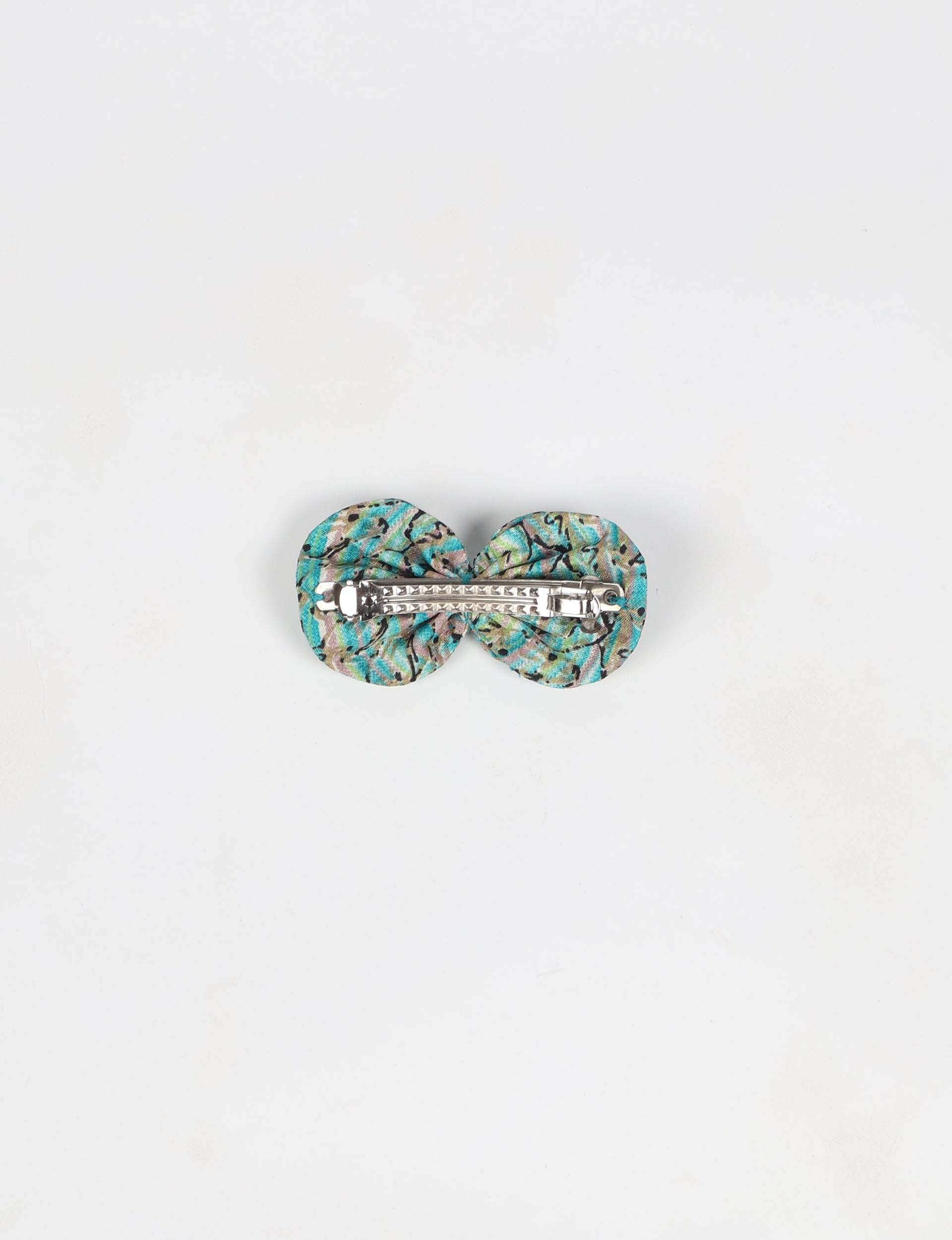 Rectangular metal hairclip covered with fabric. Provides a firm grip to hold sections of hair securely in place. Lighting and screens may cause slight variations in color appearance.
