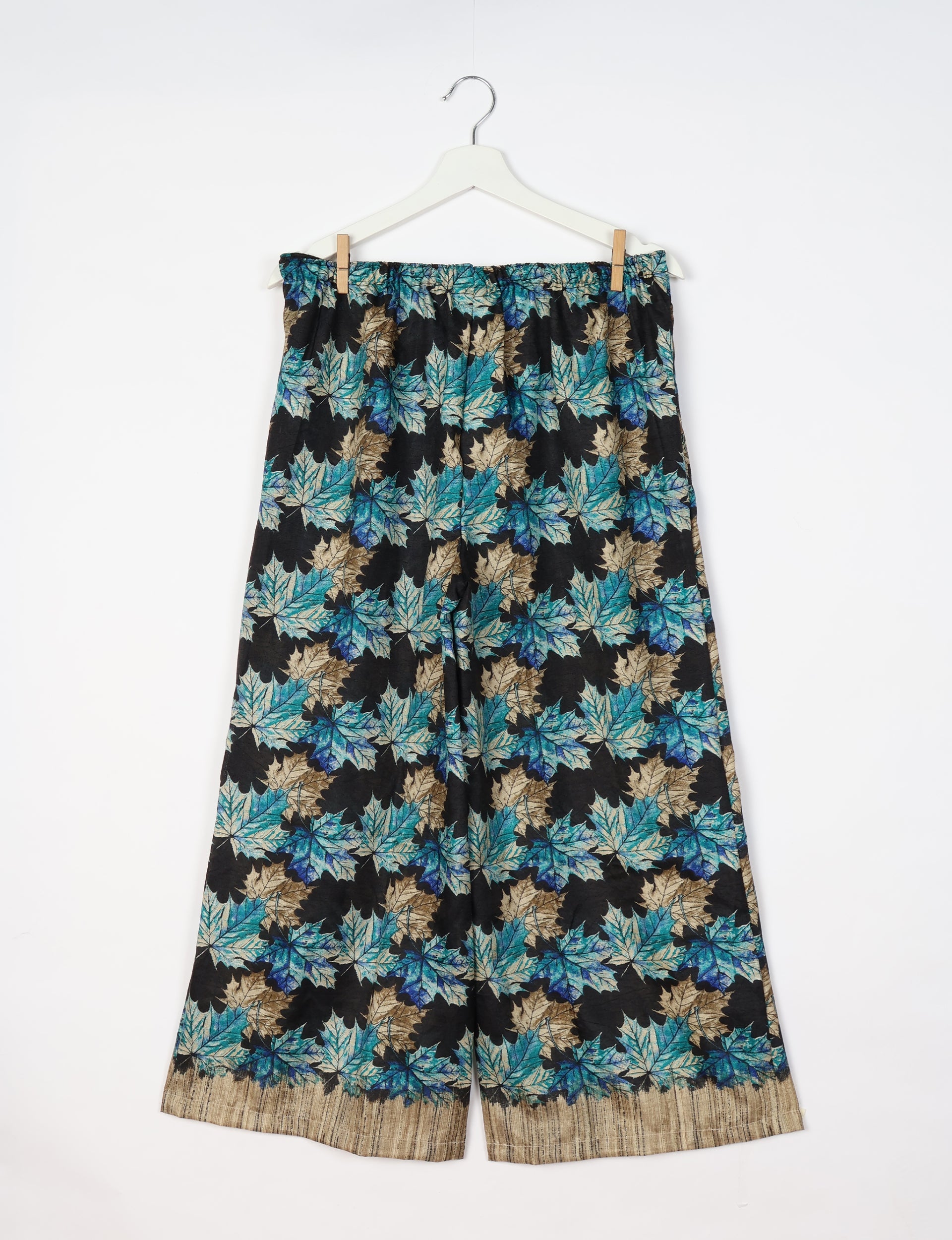 These palazzo pants feature a flat front, a fully elasticated waistband, and a wide-leg silhouette. They are ankle-length and finished with a contrast border at the hem.