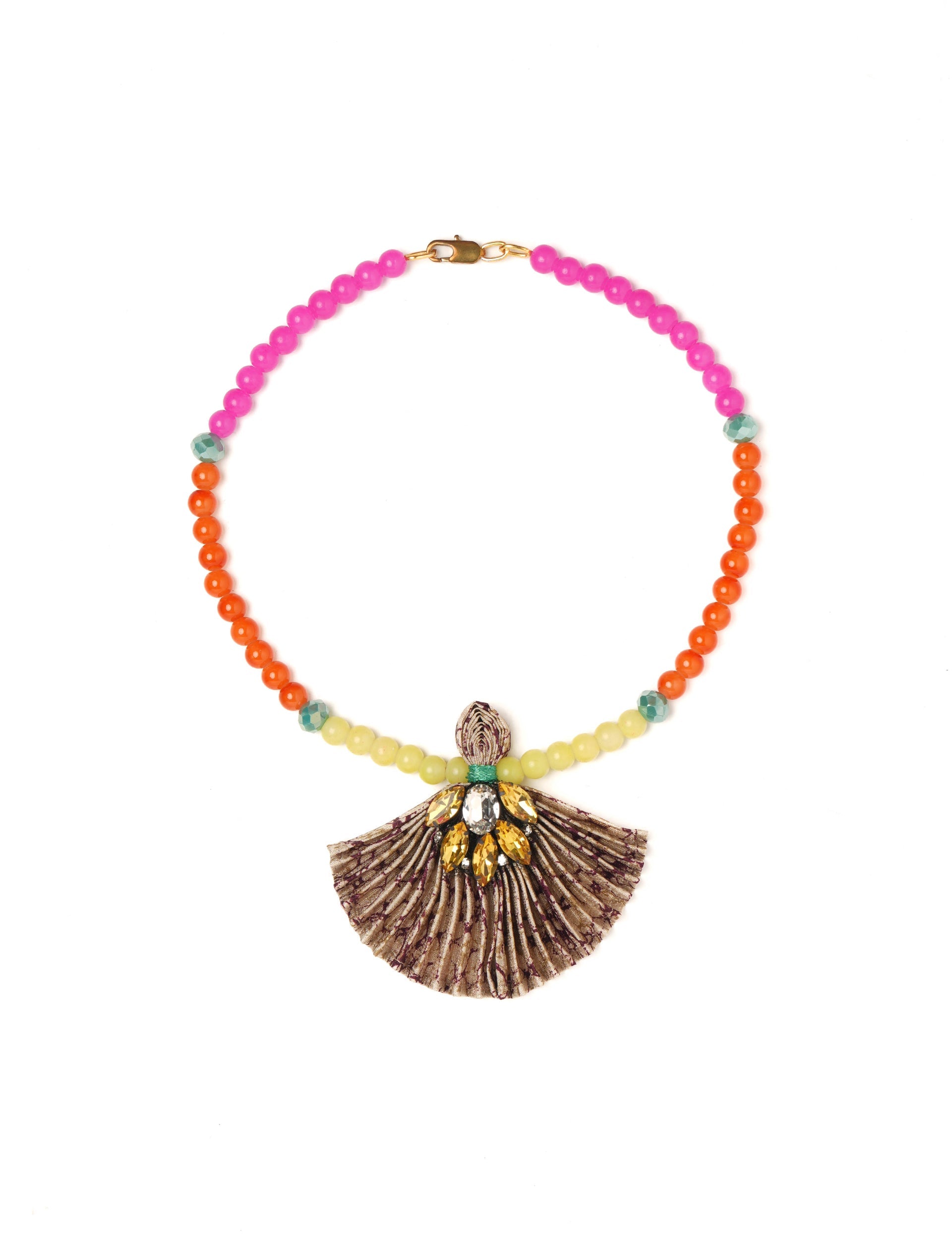 Beaded strand necklace featuring a pleated pendant. Lighting and screens may cause slight variations in color appearance.SIZE : H 40 CM