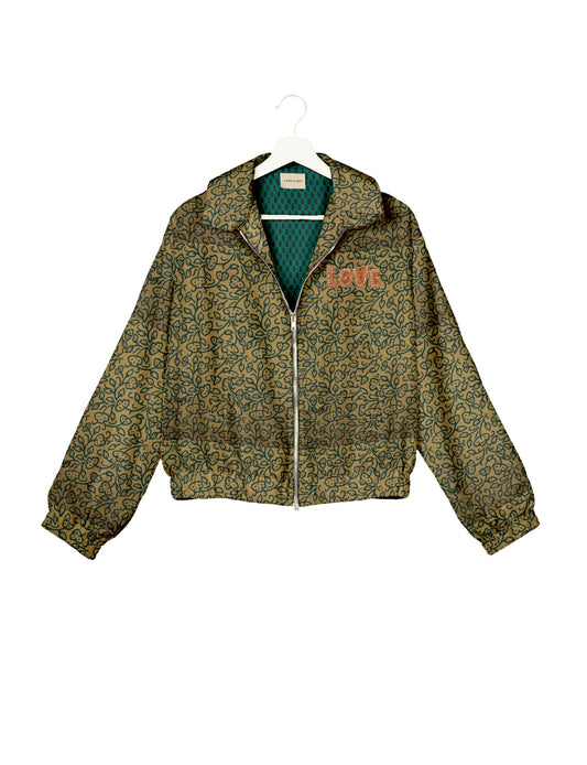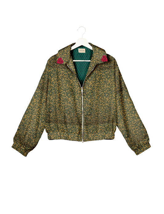 GOLD HEART BOMBER JACKET - Beige Leaves