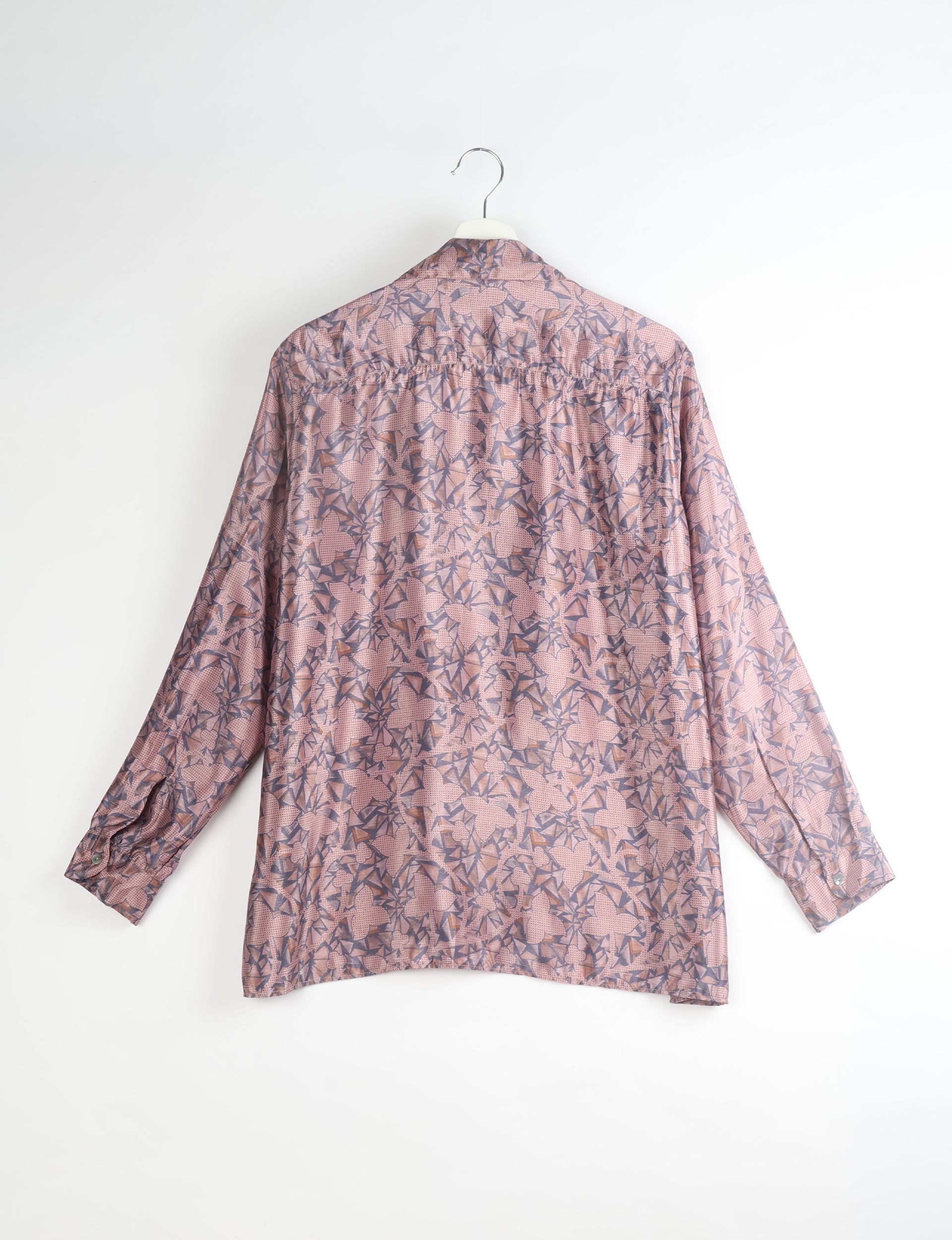 This is a long-sleeve button-down shirt featuring a relaxed fit and a notched collar with a wide lapel. The sleeves are full-length and finished with simple turn-up cuffs.