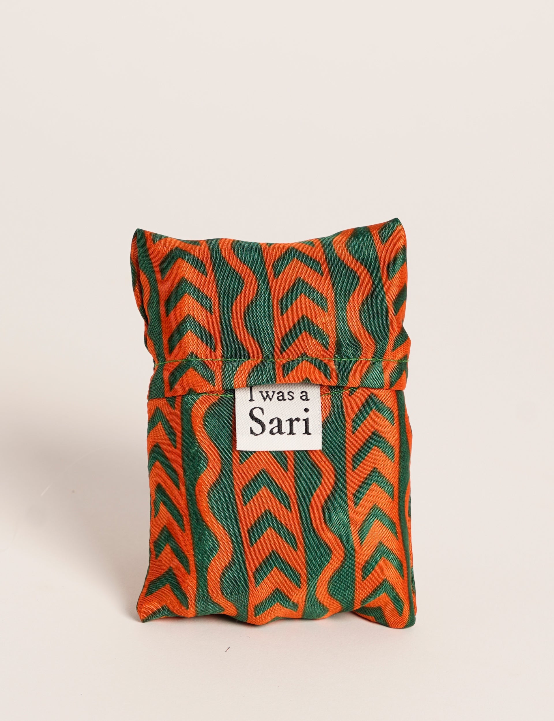 I'm not made from virgin fabrics and dyes, so my carbon footprint, pollution and water usage is way lower than other products. Instead, I'm made with circular production methods, from waste fabric which already existed. I turned into an I was a Sari instead of becoming landfill. Now I'm looking forward to my second life, maybe with you.