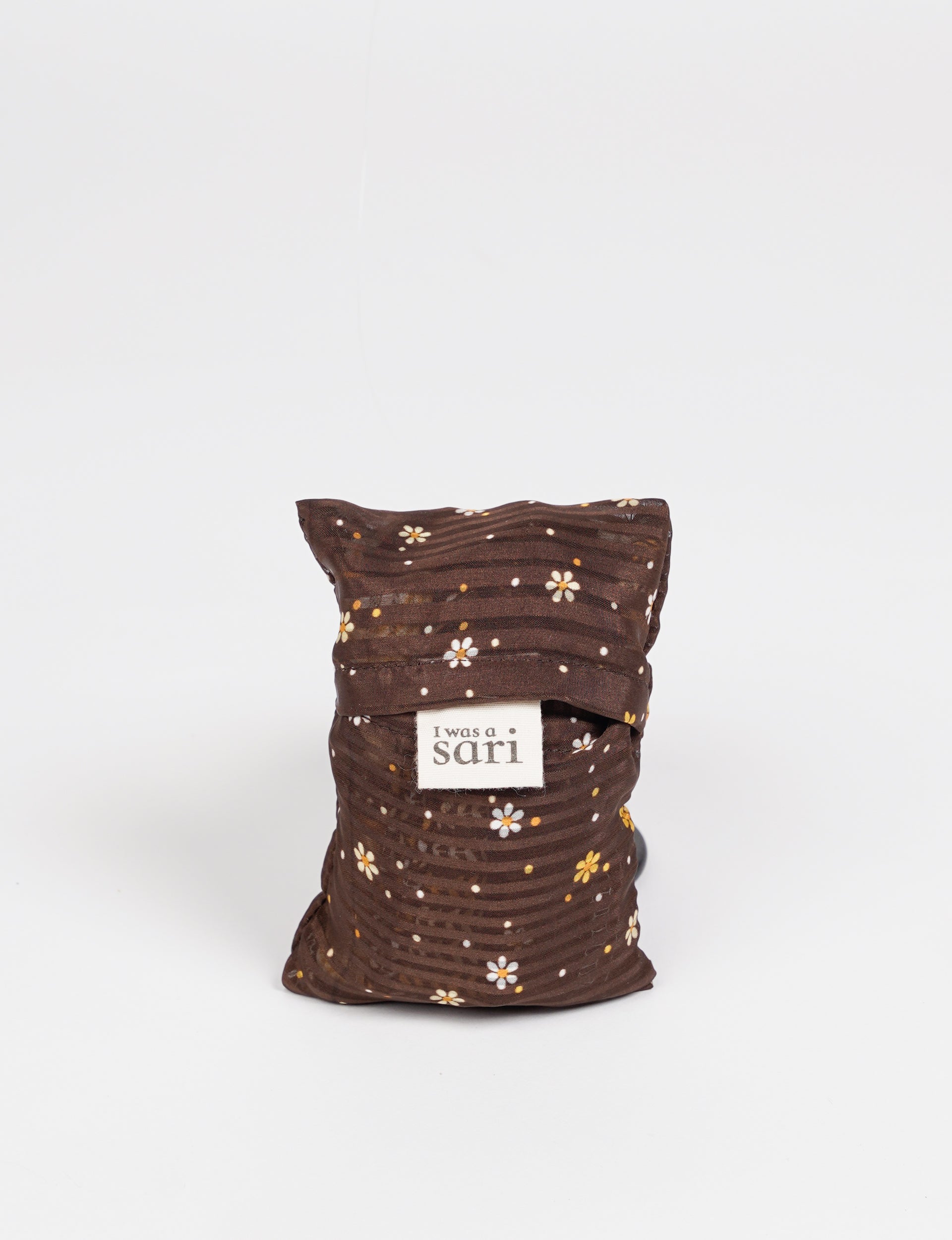 I'm not made from virgin fabrics and dyes, so my carbon footprint, pollution and water usage is way lower than other products. Instead, I'm made with circular production methods, from waste fabric which already existed. I turned into an I was a Sari instead of becoming landfill. Now I'm looking forward to my second life, maybe with you.
