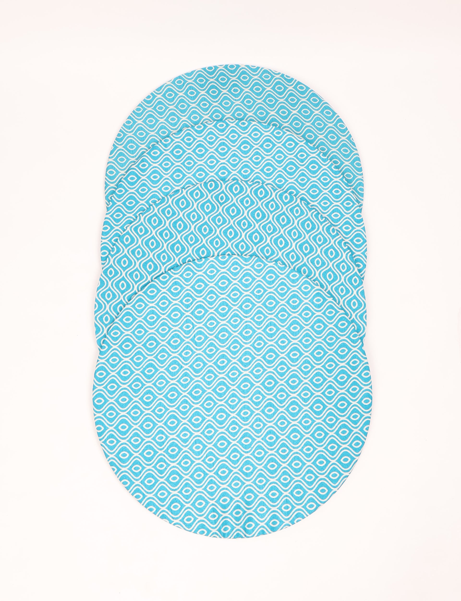 Set of four circular placemats with 3 mm MDF core and removable fabric sleeves. Sleeves are elasticated, washable, and replaceable. Suitable for table place settings or serving dishes. Lighting and screens may cause slight variations in color appearance.