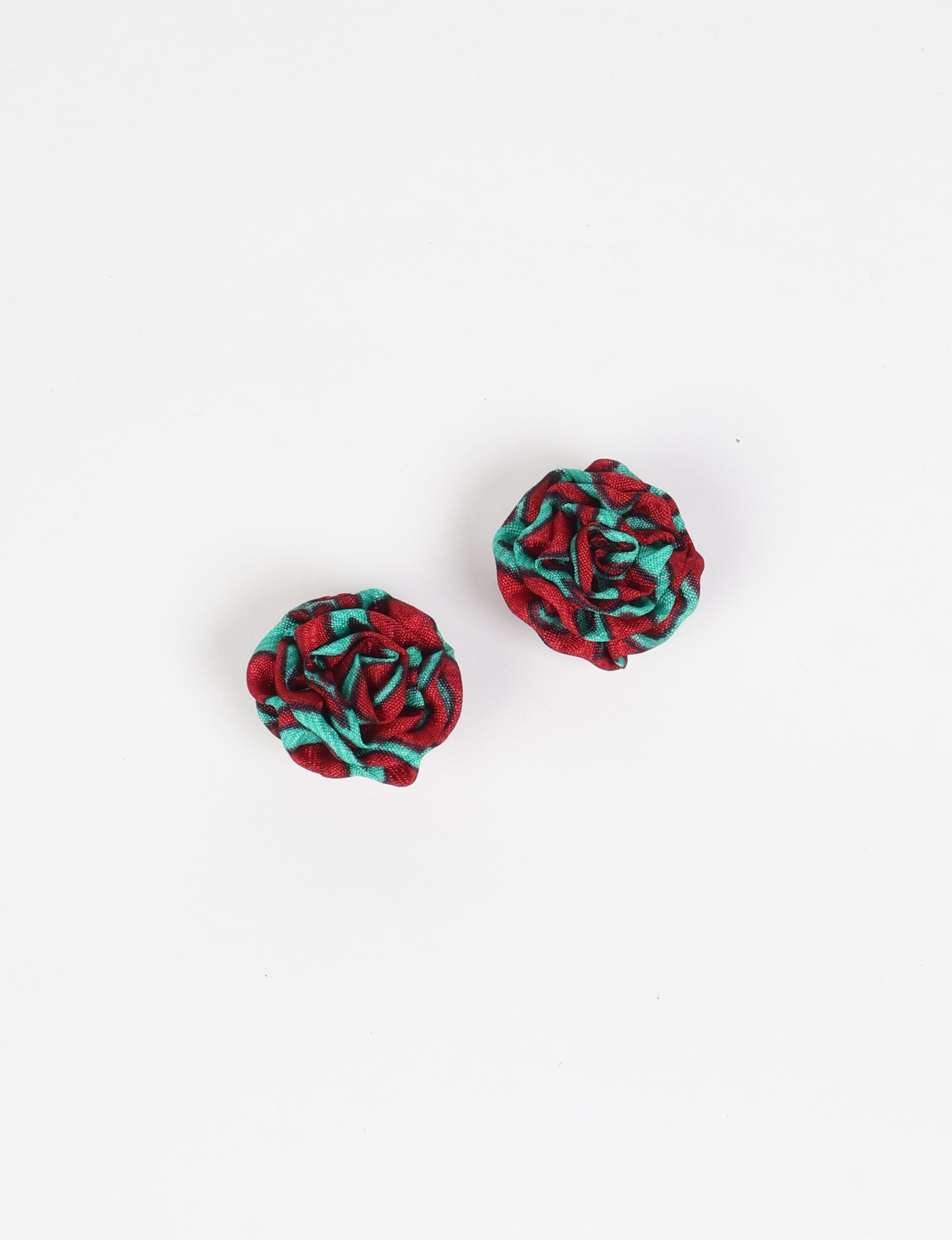 The ruffle earrings feature gathered fabric stitched into circular folds. Stud fitting with nickel-safe metal post. Lighting and screens may cause slight variations in color appearance.