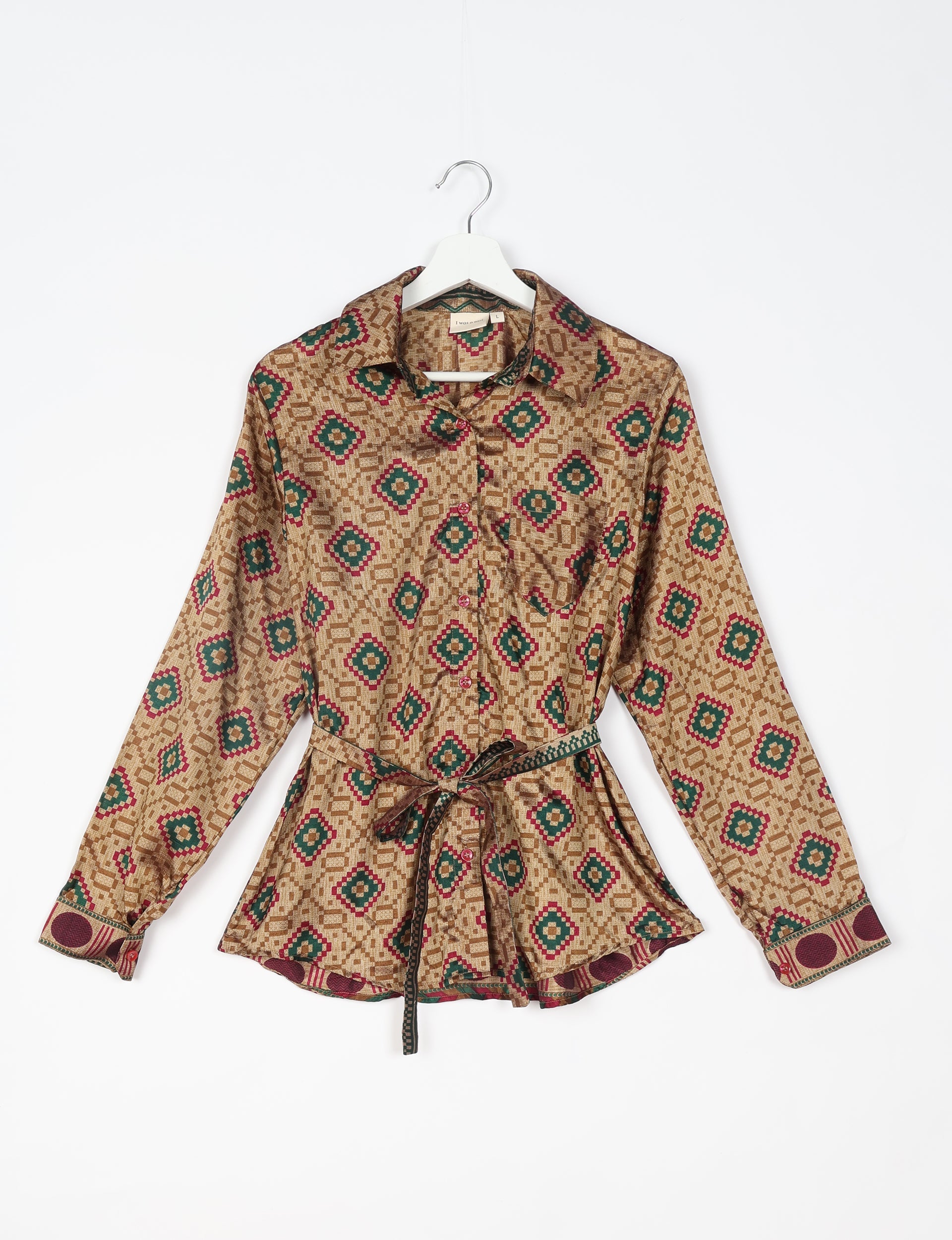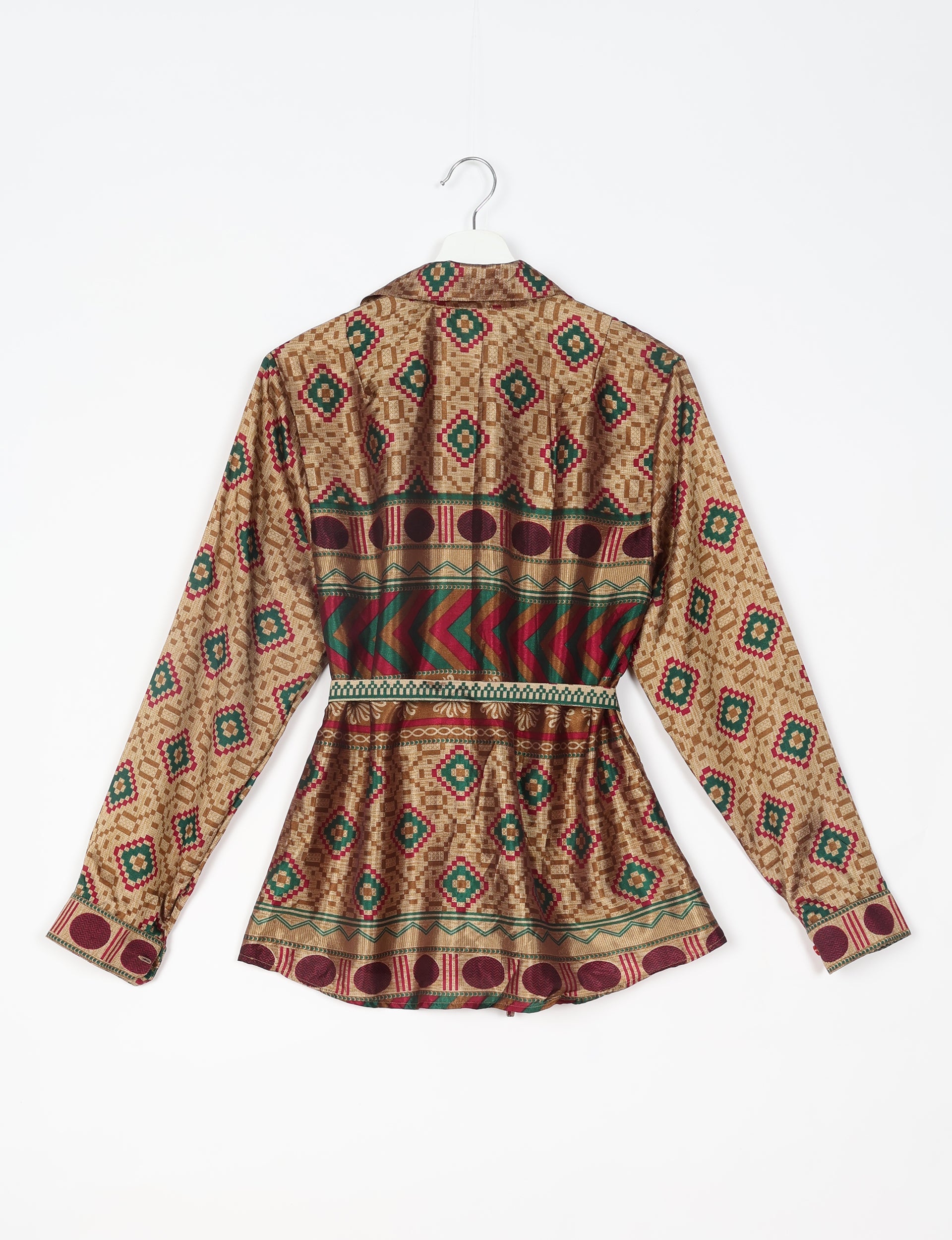 A beautiful shirt, nice length so it can be worn tucked in or out. I like the back which is a different pattern and works really well.