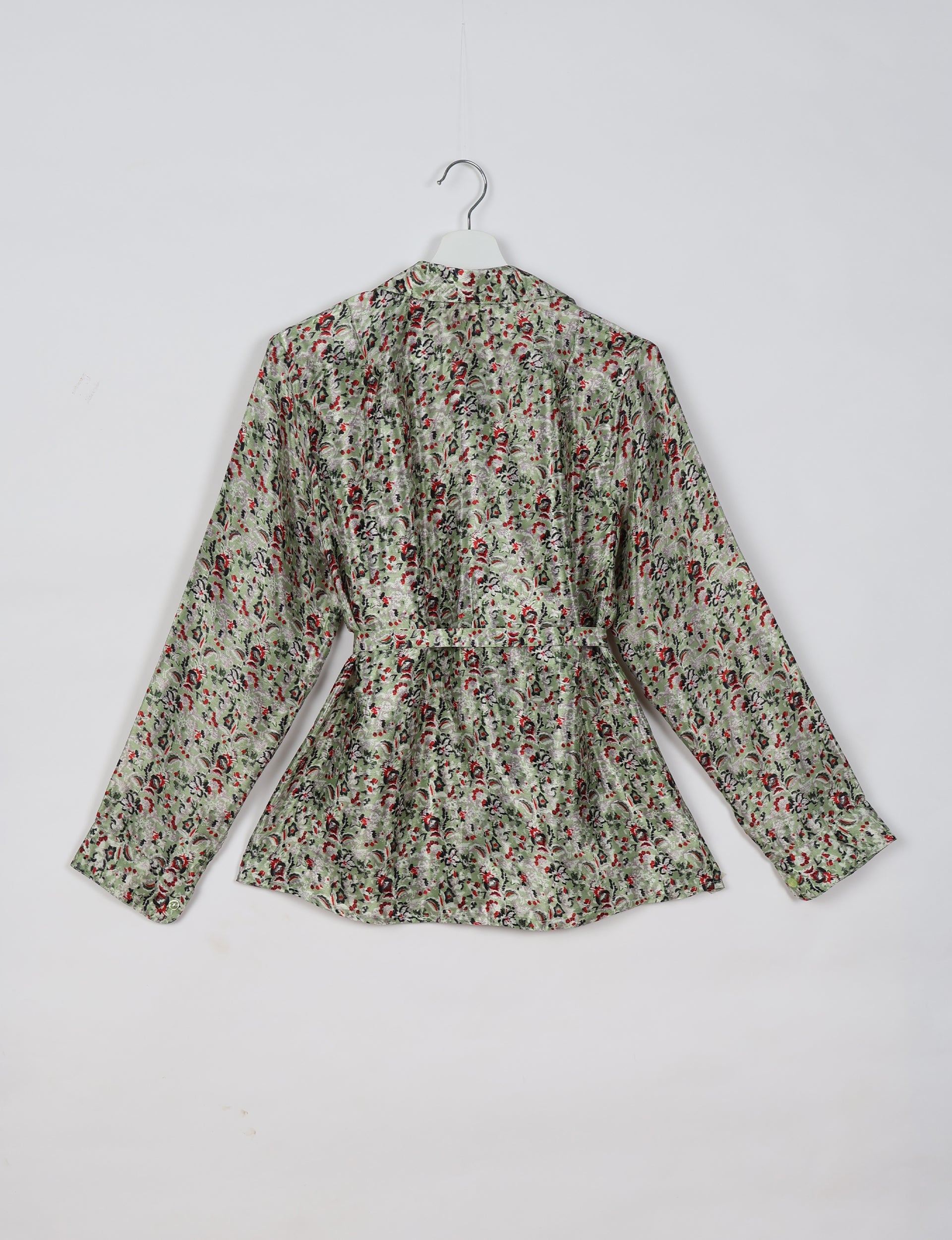 A slim-fit, long-sleeve shirt featuring a semi-spread collar and front button-down closure and a front pocket. It is constructed with standard shirt cuffs finished with button fastenings. The shirt includes a detachable self-fabric belt that can be styled at the waist or worn as a neck tie.
