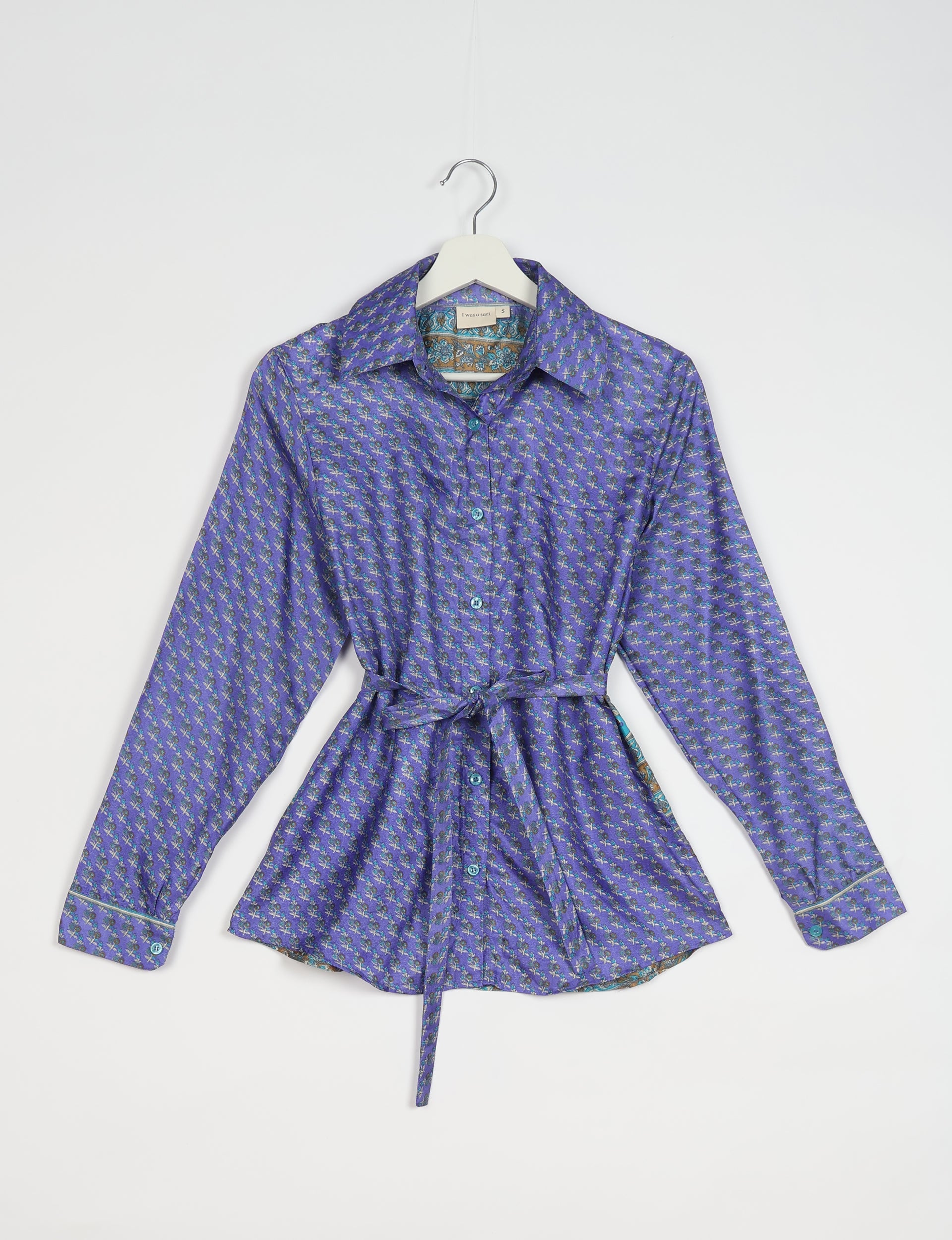 A slim-fit, long-sleeve shirt featuring a semi-spread collar and front button-down closure and a front pocket. It is constructed with standard shirt cuffs finished with button fastenings. The shirt includes a detachable self-fabric belt that can be styled at the waist or worn as a neck tie.