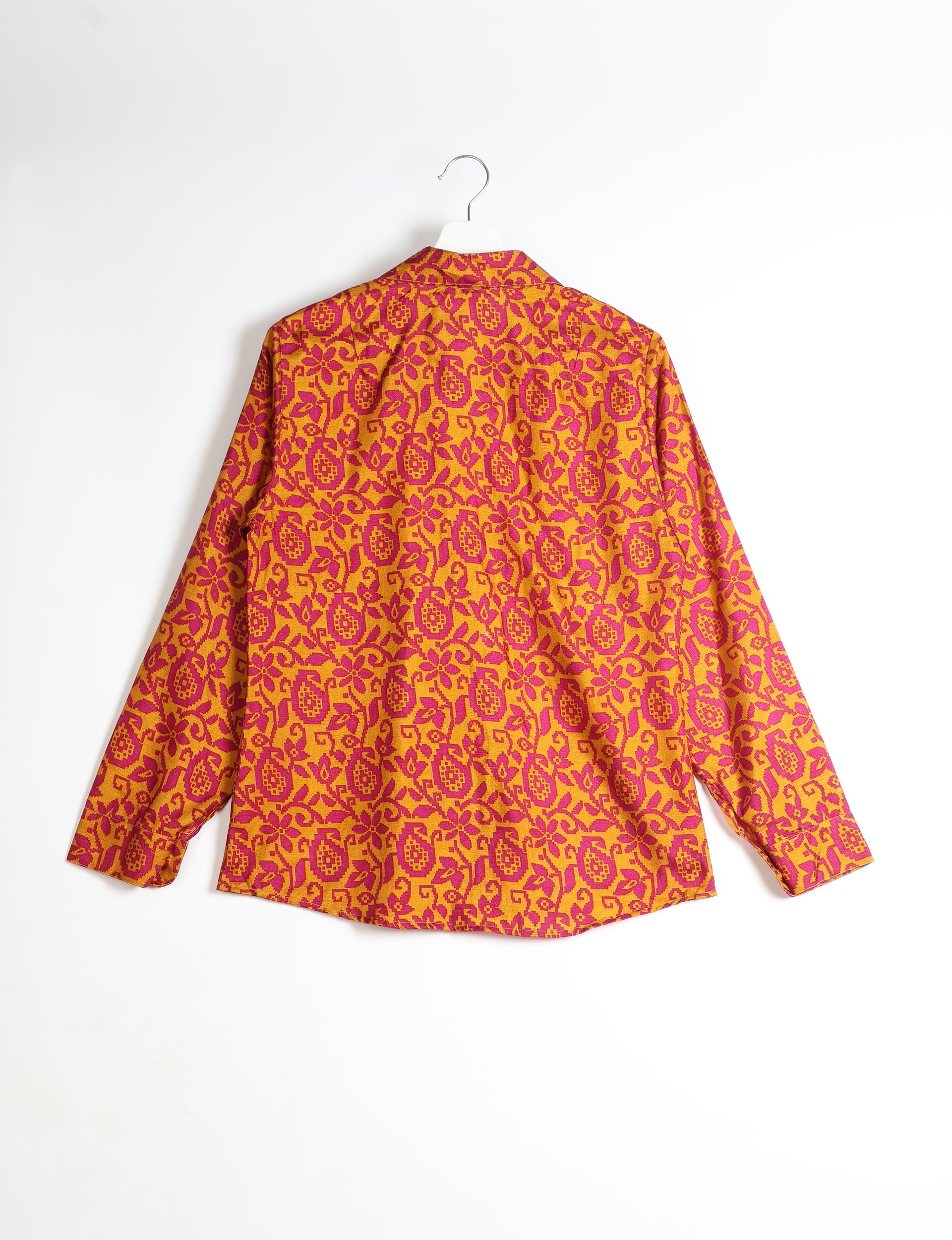 A beautiful shirt, nice length so it can be worn tucked in or out. I like the back which is a different pattern and works really well.