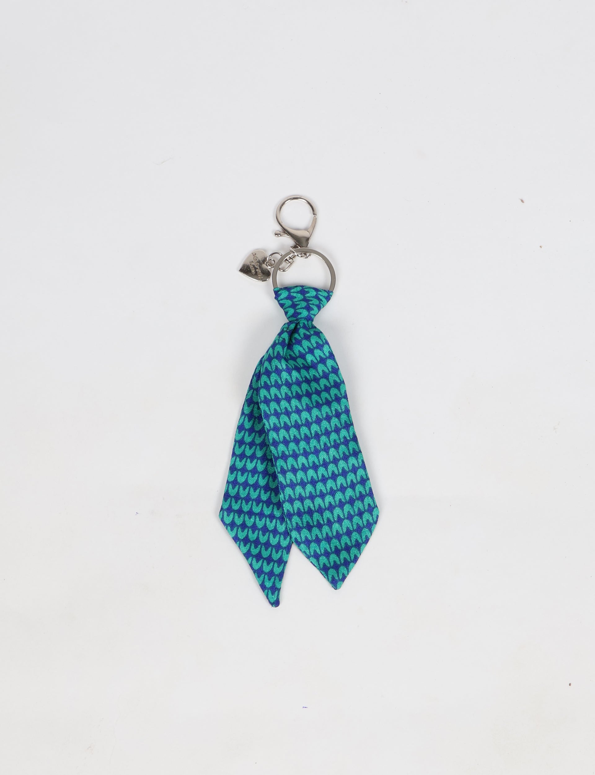A fabric tie detail attached to a metal key ring, made for carrying keys with added grip and style. Lighting and screens may cause slight variations in color appearance.