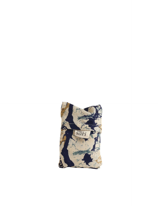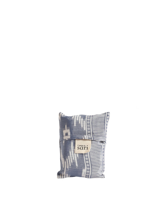 I'm not made from virgin fabrics and dyes, so my carbon footprint, pollution and water usage is way lower than other products. Instead, I'm made with circular production methods, from waste fabric which already existed. I turned into an I was a Sari instead of becoming landfill. Now I'm looking forward to my second life, maybe with you.